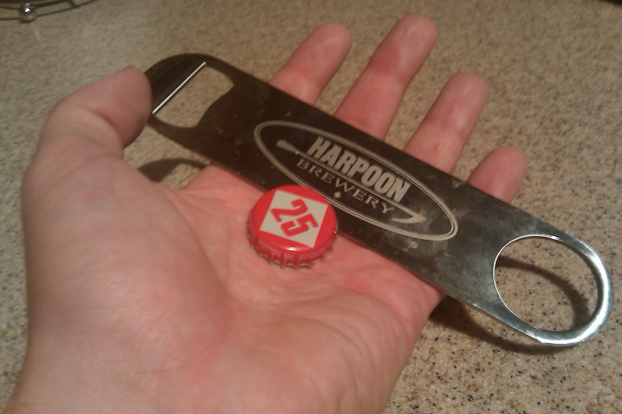 Still, he wanted to debrief us on our journey, so he sat down with us and brandished his beer before us. He had been drinking it before we got there, and I noticed first the floral decorations and color scheme of the bottle he was holding. I asked what he was drinking, and he simply said, “a Harpoon.”