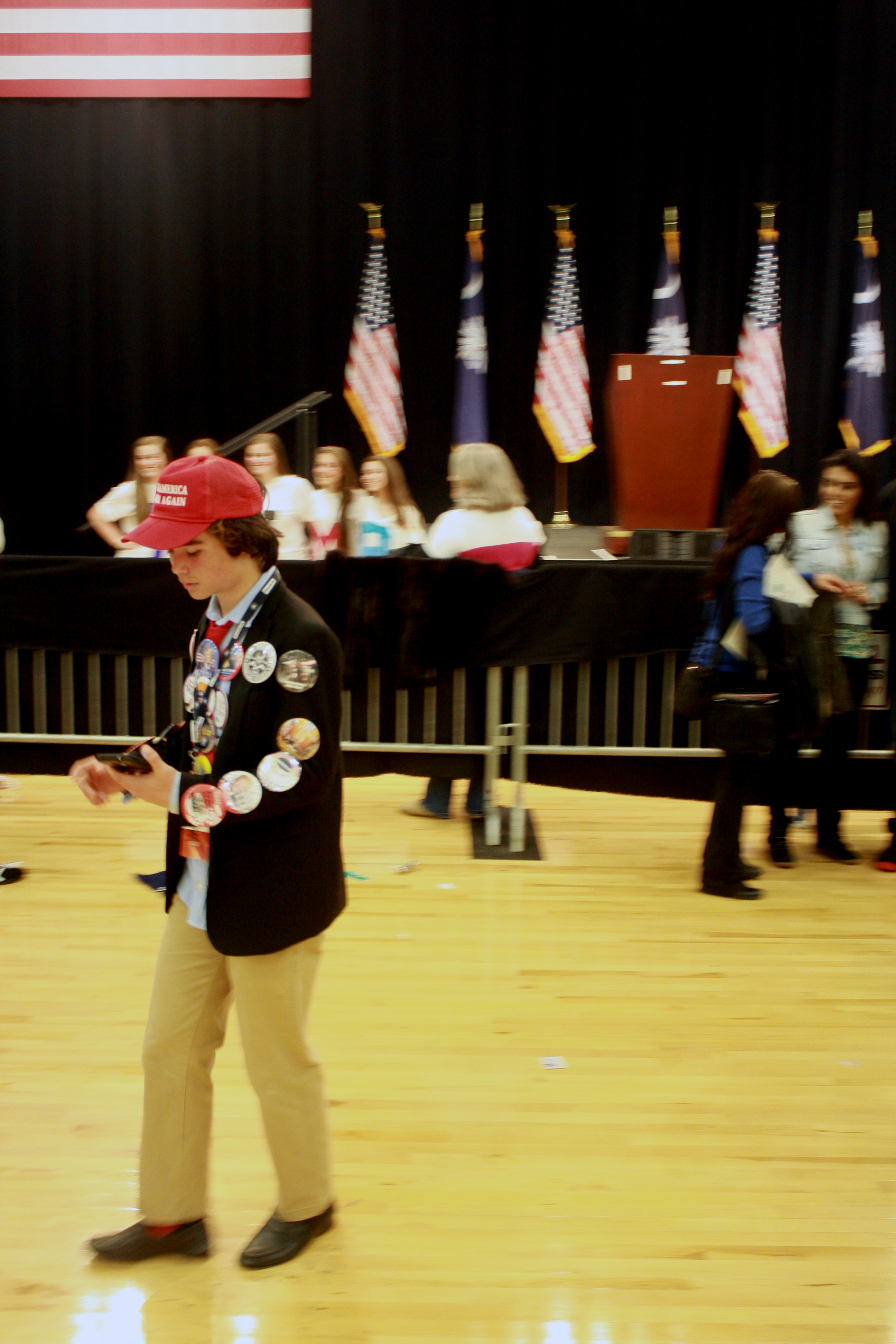 A young Trump supporter hangs around long after Donald Trump’s post-rally autograph session ended in Myrtle Beach, S.C. on Feb. 19, 2016.