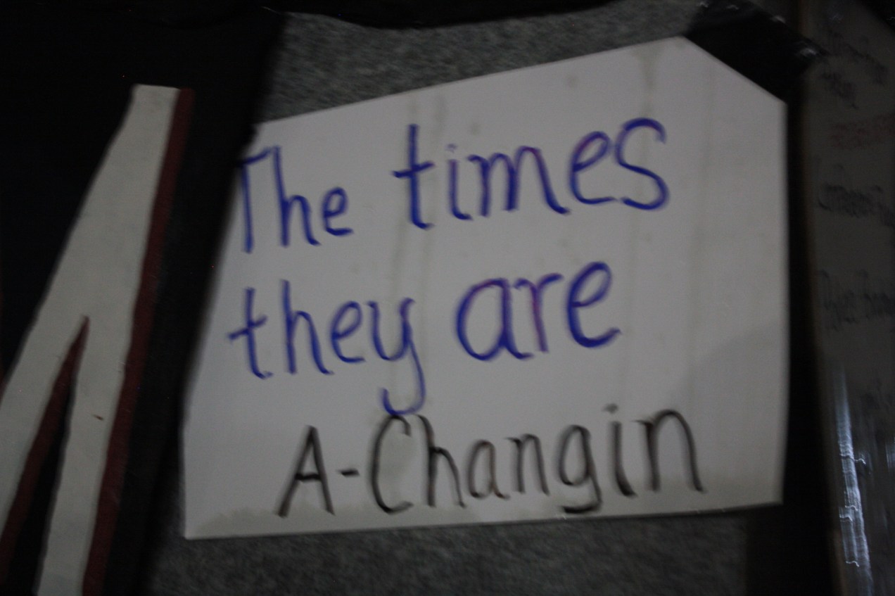 Signs posted around the pedestal at Silent Sam on campus in Chapel Hill on Aug. 25, 2017.